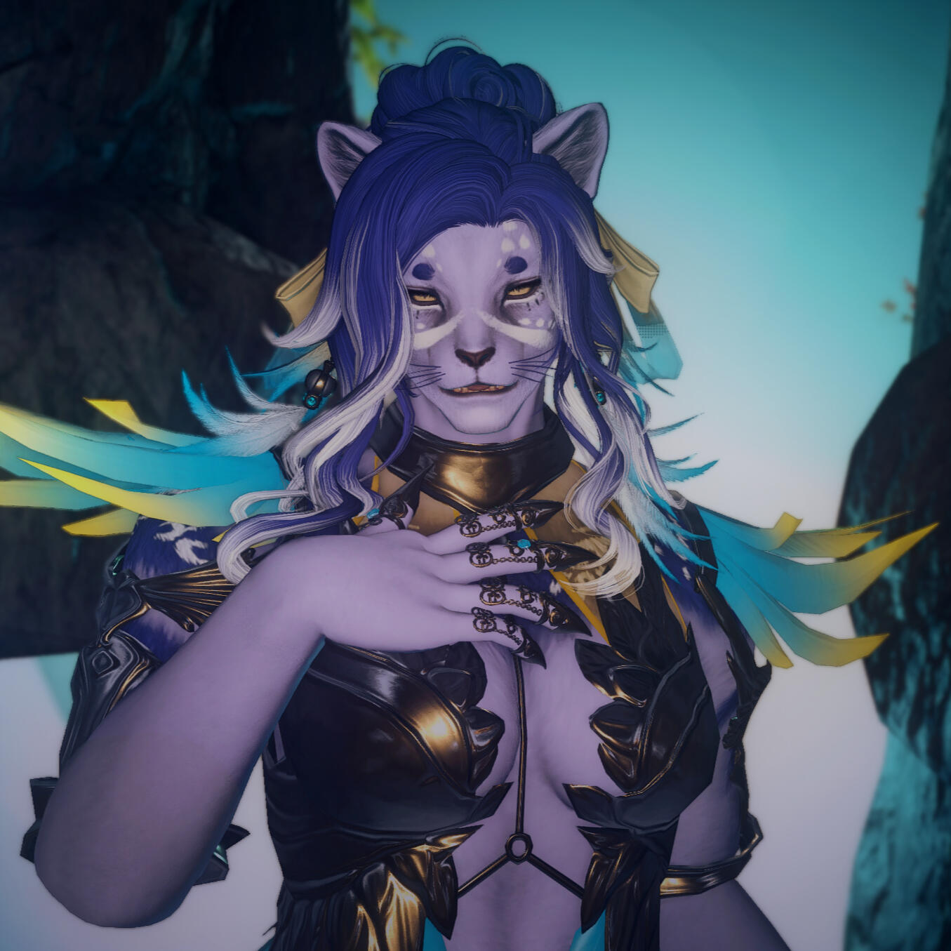 It is not only her career, but her life's passion. Protecting her home and the challenge of a powerful hunt keeps the huntress busy and active. Being very social, she often befriends other hunters and works along-side them. It would be very easy to meet her at a hunt board or out in the wilds, and the Hrothgar is always eager to assist others if they are in danger or overwhelmed out in the world. She is a full fledged Viper and registered in Tuliyollal with the guild. Most recently Tlalli has also joined the hunt guild in Ishgard and will seek out others in varying area, including Othard.